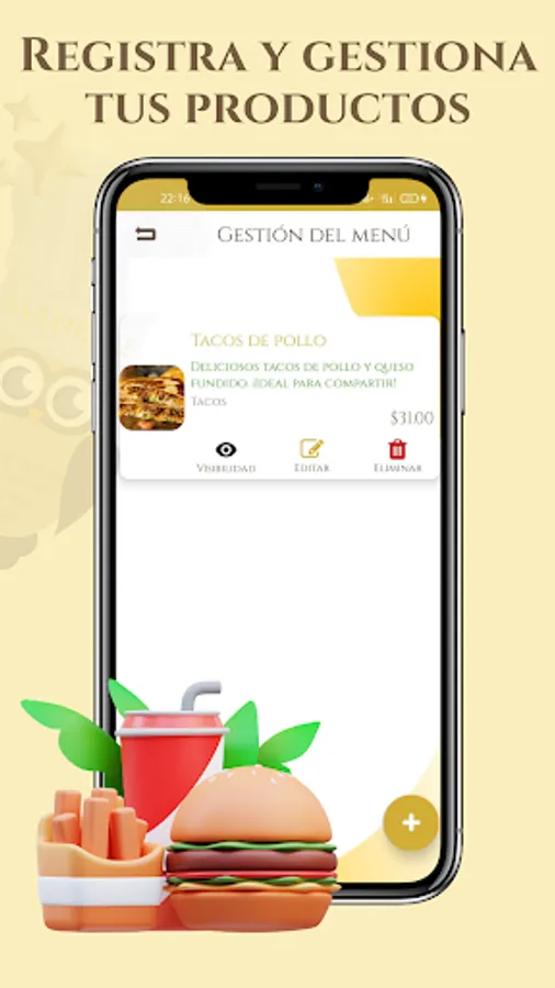 -It has a visibility button for each dish to show or hide them from your customers according to your available stock.