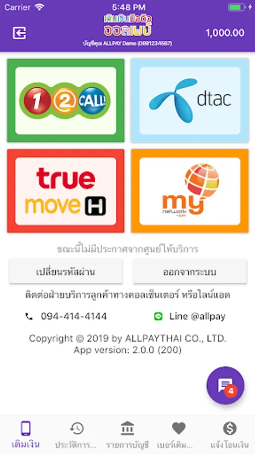 So you can easily be a mobile top-up service agent for all companies, including AIS, D-Tech, True, increase your income Whether you are a grocery store, a mobile phone shop Pharmacy company employees or wanting to increase revenue by selling mobile top-ups Like you have a mobile top-up machine Just use your phone to increase revenue.