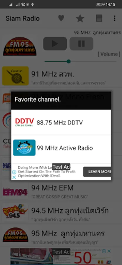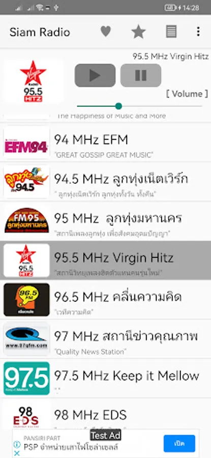 เมื่อต้องการฟังวิทยุให้เลือกที่ช่องสถานีแล้ว แอปพลิเคชันจะทำการเปิดสถานีให้