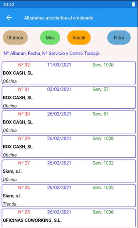 Each employee can have their App on their mobile or share a mobile / Tablet in each work center, since it is identified with a user number and password, for more security.