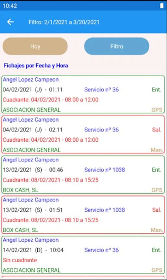 1.- The signings of the App can be by GPS or Manuals, when there is a forgetting of signing, for example. Whoever supervises will be able to know if a signing is manual, to take the appropriate actions.