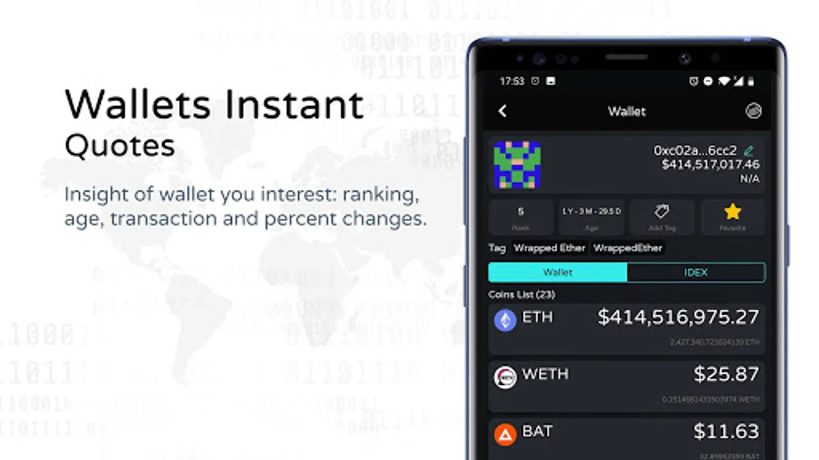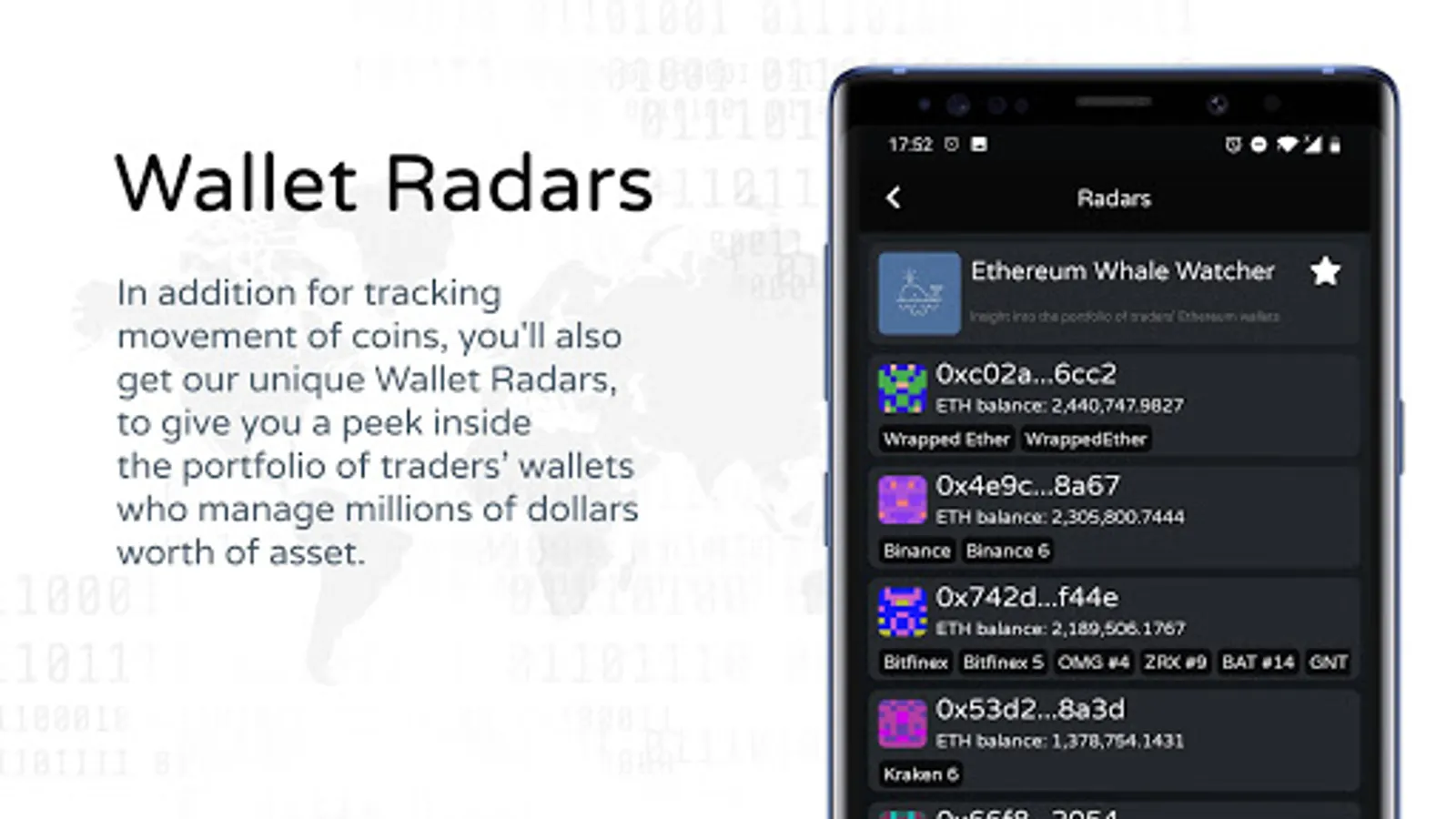 + Filter by transaction volume and balance to discover the most active (and profitable!) traders. Study their trades and grow your investments.