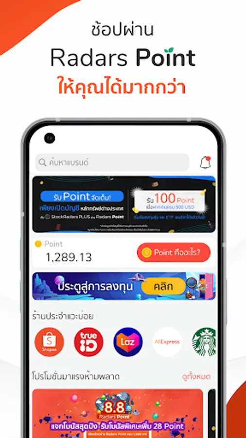 Only with one Point in Radars Point, you can own a fractional share in world-renowned businesses, both national and international including 7-11, AOT, Starbucks and Facebook.