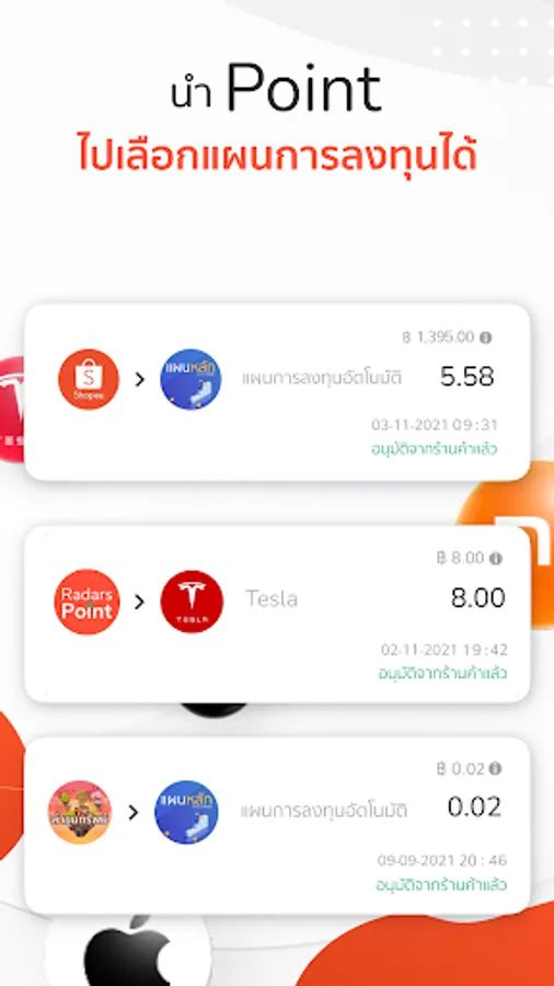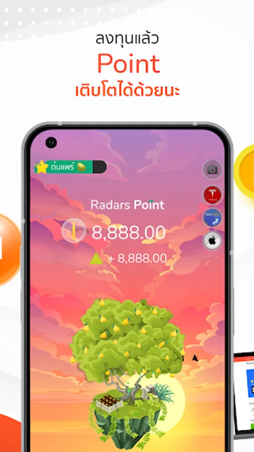 Keep on shopping to get more Point. Gradually collecting Point for investing is like growing your own tree. The more Point you earn, the more your tree in Radars Point becomes fruitful. Then you can reap a harvest of your grown tree.