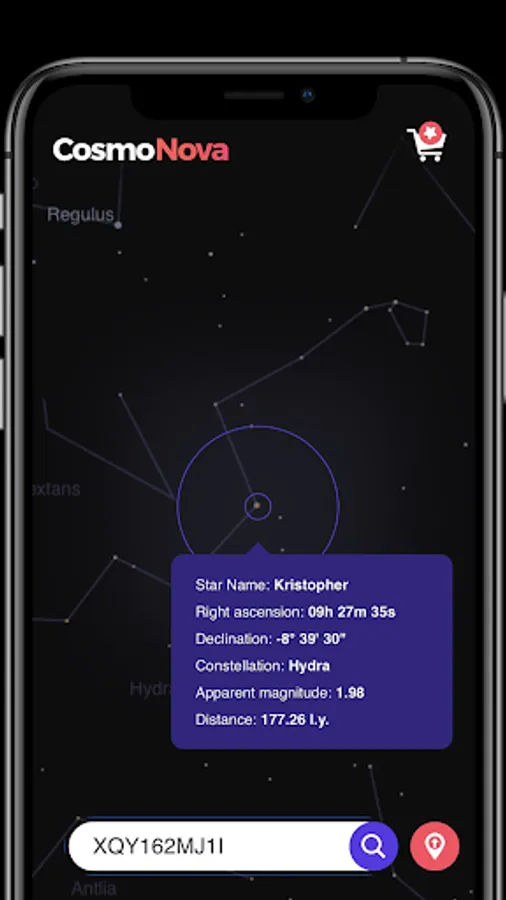 Cosmonova's Star Finder App will help you find your star and navigate the universe. You can almost literally touch it with this easy-to-use app that tracks stars anywhere, anytime! Simply enter your registration code obtained at Cosmonova's official site and start exploring your little universe. If you haven't bought a star yet, you can do it through the app as well. Select the star of your choice and personalize the star registration within the in-app form.
