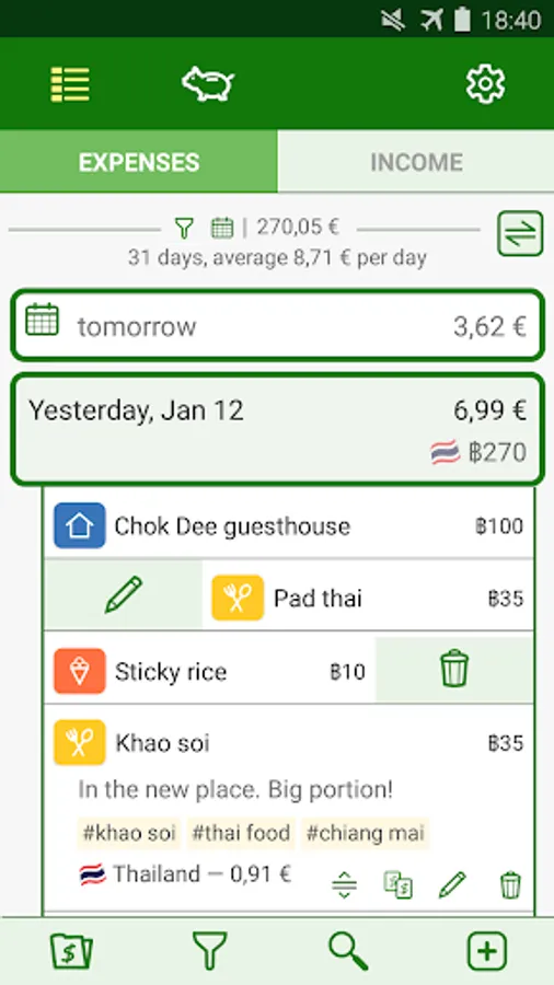 I've been traveling around Europe, Asia and Oceania for the last four years. At first I was carefree with my expenses, but at some point I realized that I could extend my trip way longer if I started acting smarter with my money. I tried other budget apps, but then I decided to make my own to include all the functionalities that I really need. I still want to add some stats so that I can compare in an easier way if, let's say, accommodation or food was on average cheaper in this or that country.