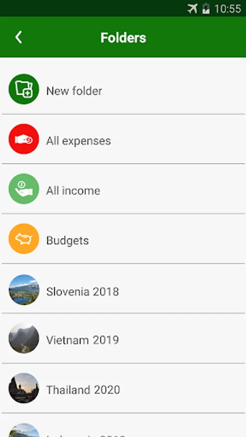 • create folders for each of your trips, to keep your expenses organized and quickly available