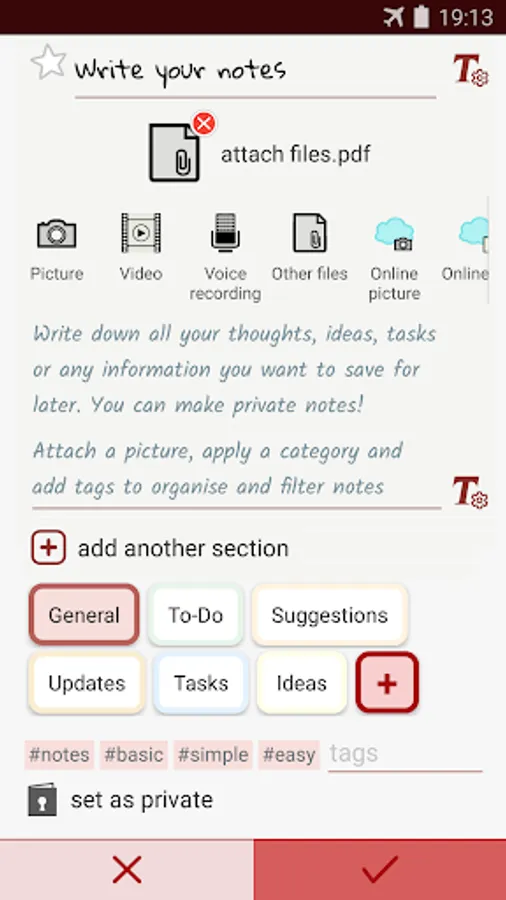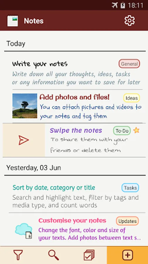 • the notepad is simple and easy to use offline, and takes very little space on your phone