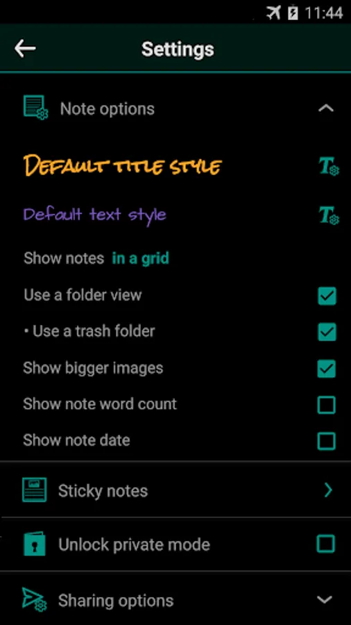 • show your notes in a folder view with a compact list or a comfy grid layout