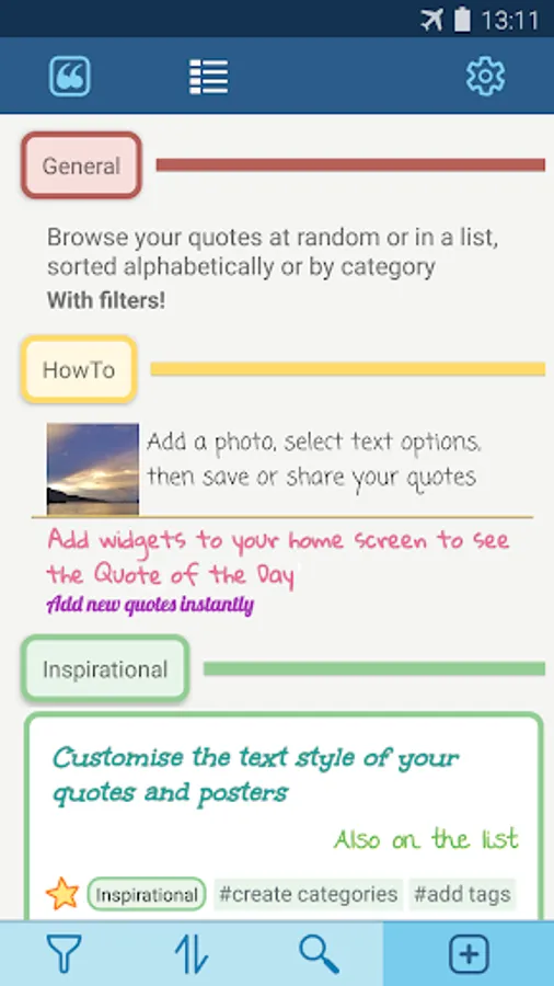 Add a 'Quote of the Day' widget to your homescreen to be reminded of the quotes you like the most.