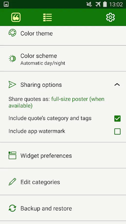 • make manual backups of your quotes, so that you don't lose them even if you change phones