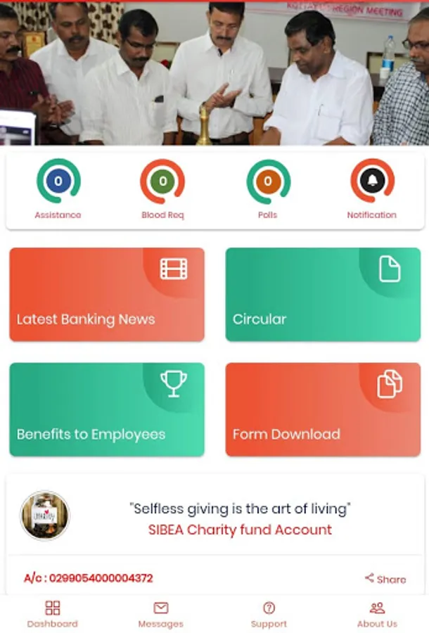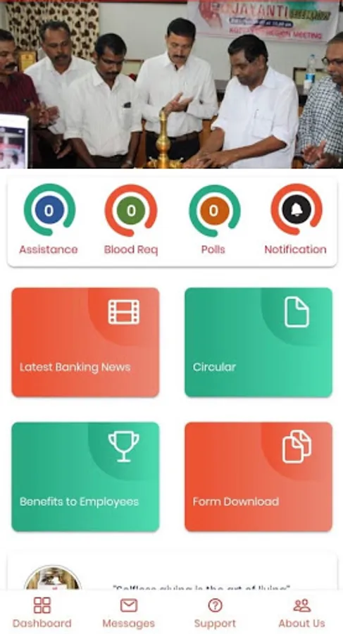 The main features of the app will be to communicate all the latest banking related information's and association services like News, Circulars, Bipartite Settlement, Transfer Request, Latest Images, Help assistance, Blood Request etc.