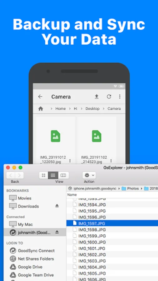 Explore, View, Download files from your desktop computers running GoodSync Connect.