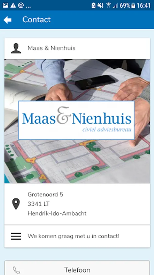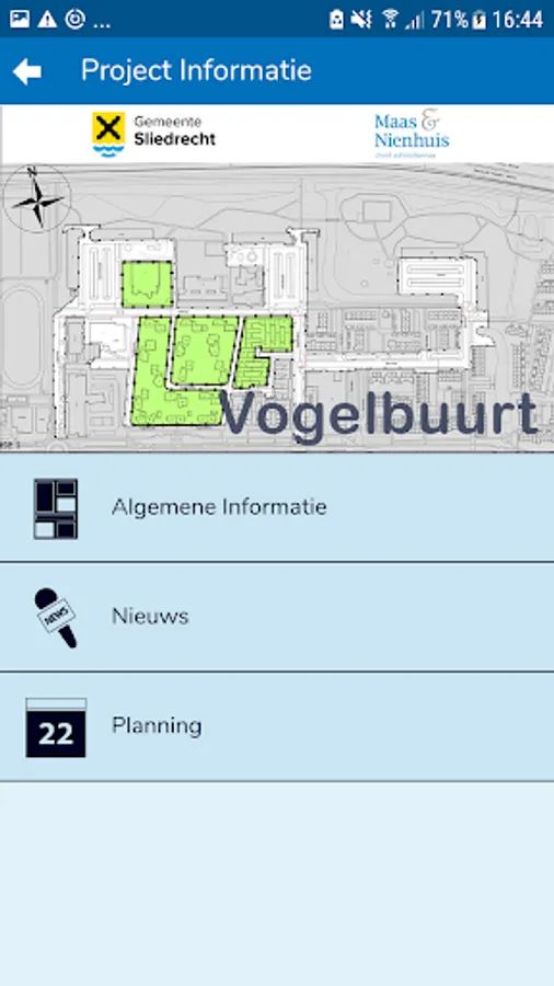 In this app you will find all information about the work in the Vogelbuurt district in Sliedrecht. Important project information and contact information is displayed. In addition, news items are regularly posted about the progress of the work. You can also leave questions, comments or complaints related to the project in the app.
