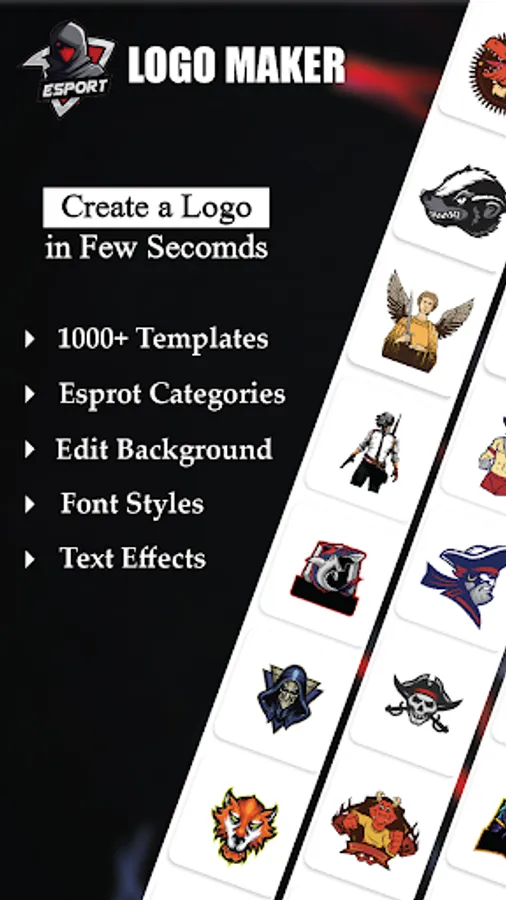 this is a Logo Maker app With Premium logos Template : Help you to Create a logo and design for game and esport logos Esport Gaming Logo
