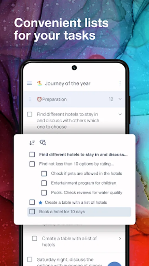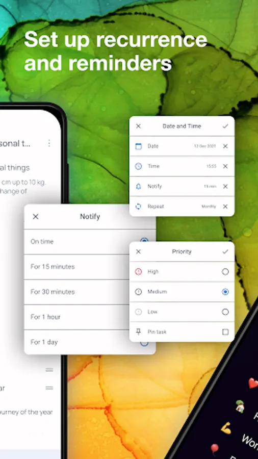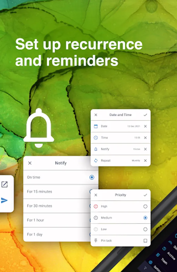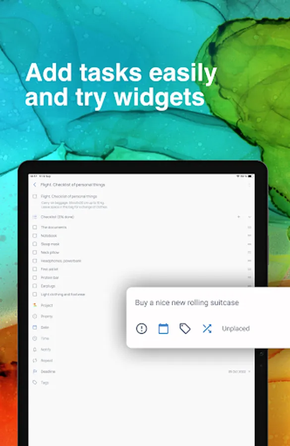 WIDGET FOR QUICK TASK CREATING. Create tasks without opening the application. You can do it at any time, even while watching a movie.