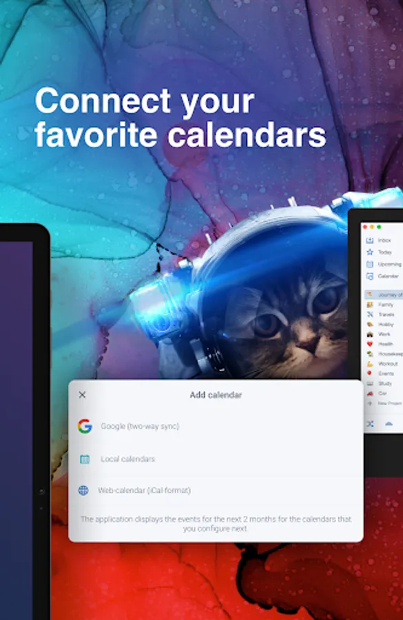 INTEGRATION WITH CALENDARS. Set one-way integration with your favorite calendars. Or two-sided one with Google Calendars.