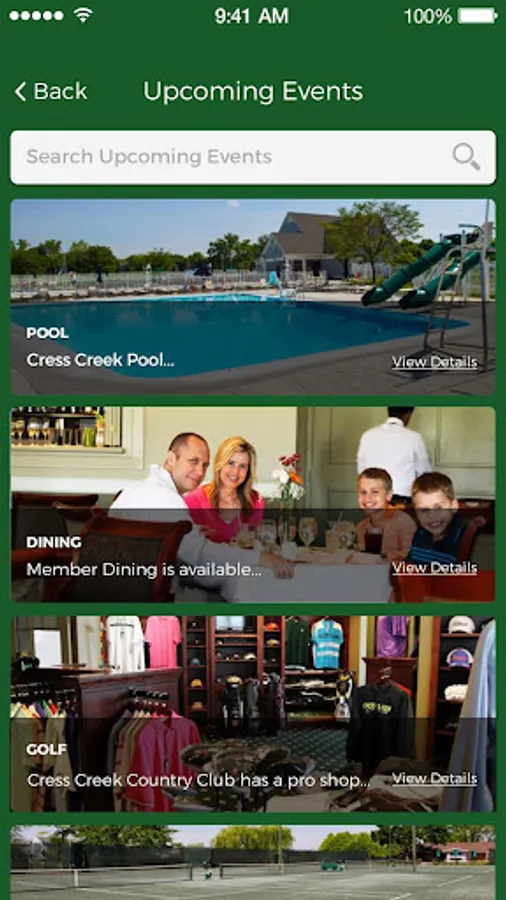Mobile App for use by members of the Cress Creek Country Club. Cress Creek Country Club members may use the app to monitor their statements, access the membership directory, keep current on events at the Club and more. Requires a membership in the Cress Creek Country Club to activate.