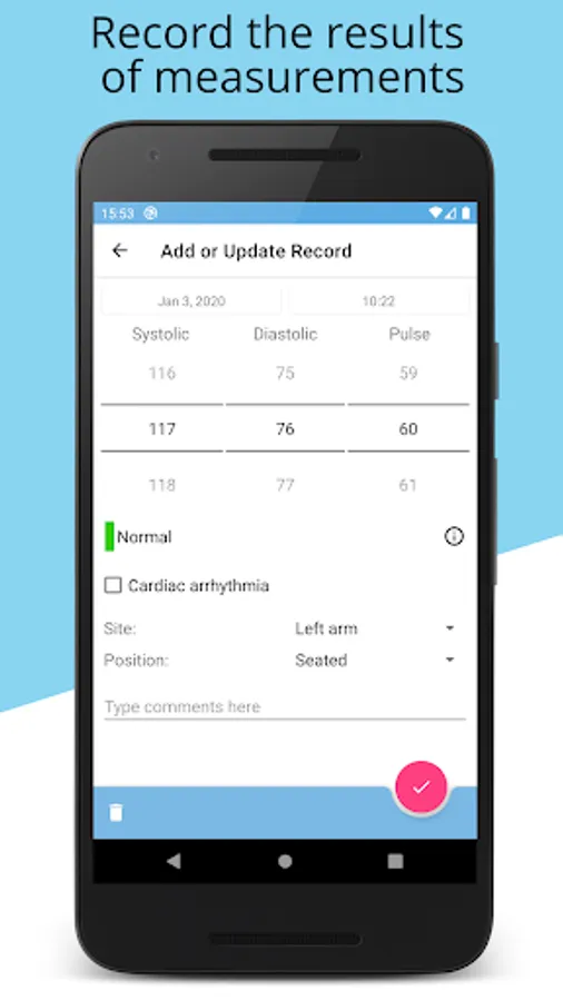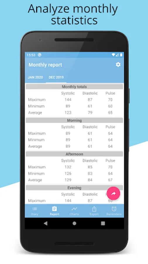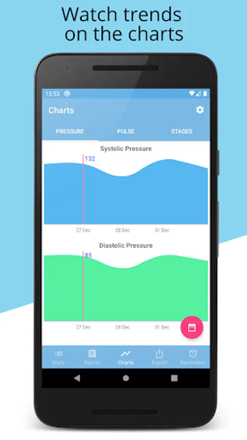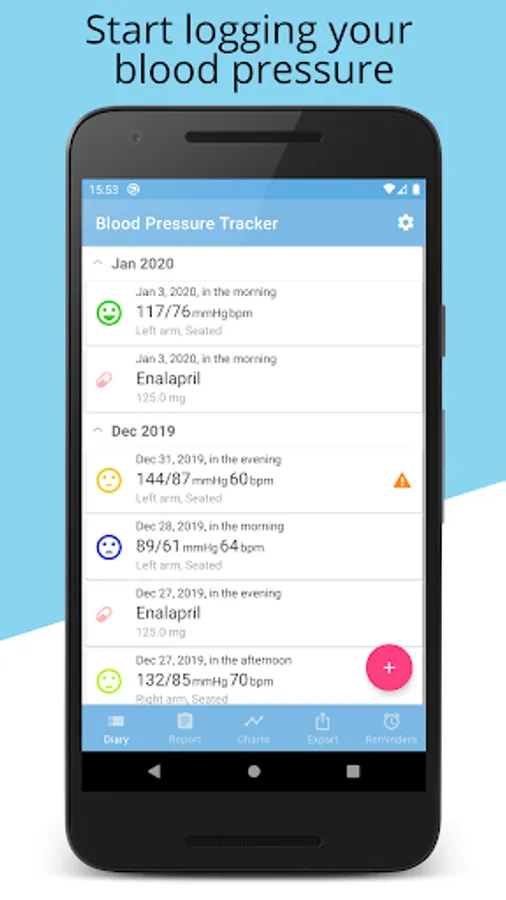 Use Blood Pressure Tracker app to store measurements and analyze trends in blood pressure changes.