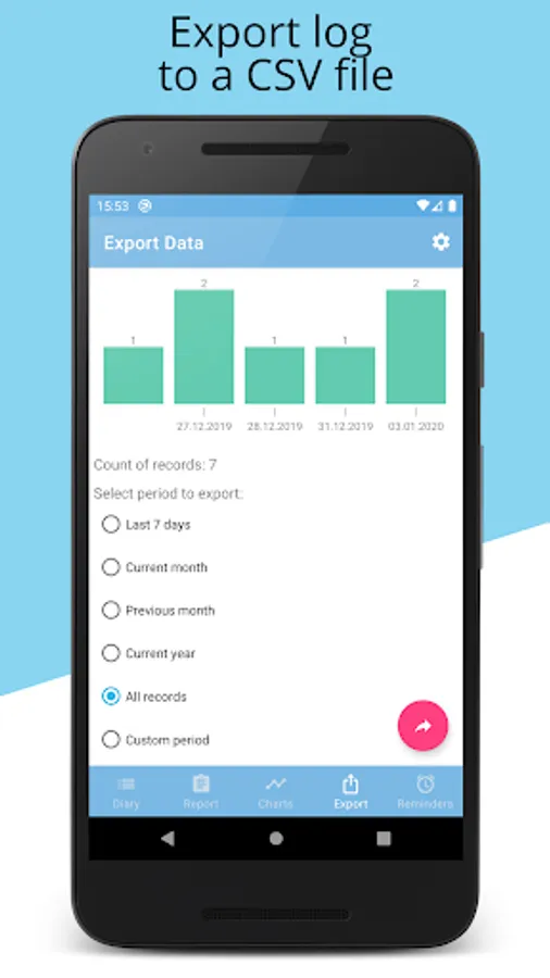 * Export data to a CSV file, which you then can share - for example with your doctor.