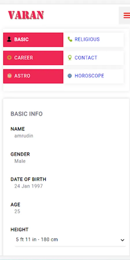 • Compatible Match Recommendation - With our powerful profile matching varan algorithm, get compatible match recommendations that fit your preferences.