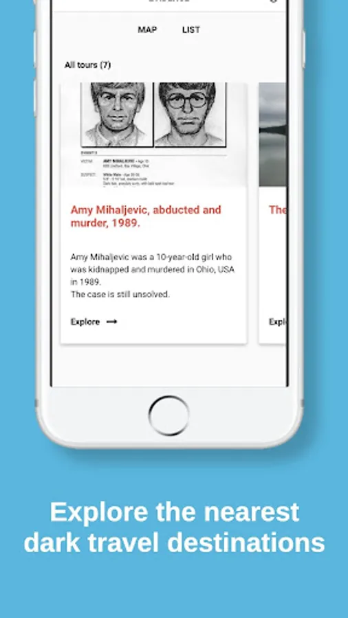 When you open the app, it shows you your nearest dark travel destinations. You choose one, and the app turns into a map that guides you to the starting point of your chosen tour. The app will recognize when you are at the starting point, and your journey to the night can begin… The stories the app tells you are true.