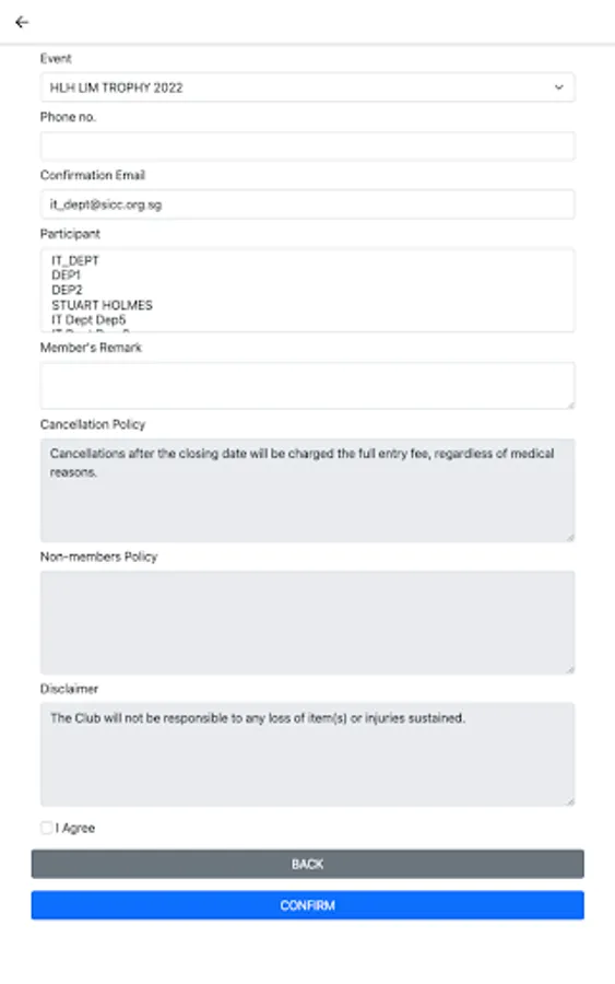 The Singapore Island Country Club (SICC) Mobile Application provides its Members personalised access for various booking and registration functions, view the latest news & updates, and to their profile. Members may send their queries and feedback to the Management on the contact page.