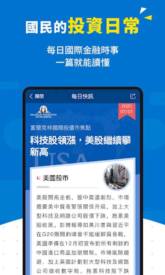 領先業界的數位投資體驗,富蘭克林就要給你最貼近國民需求的理財服務和最動心的手續優惠。