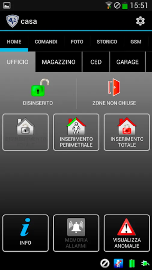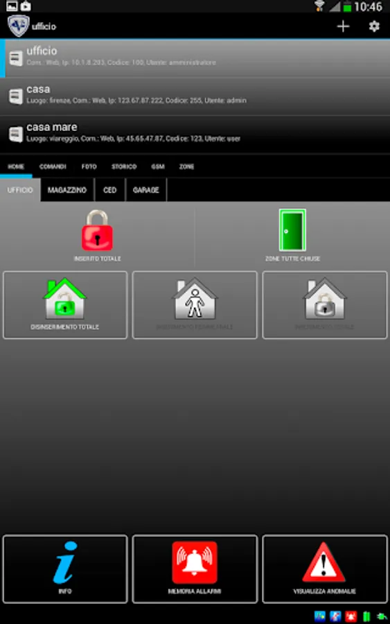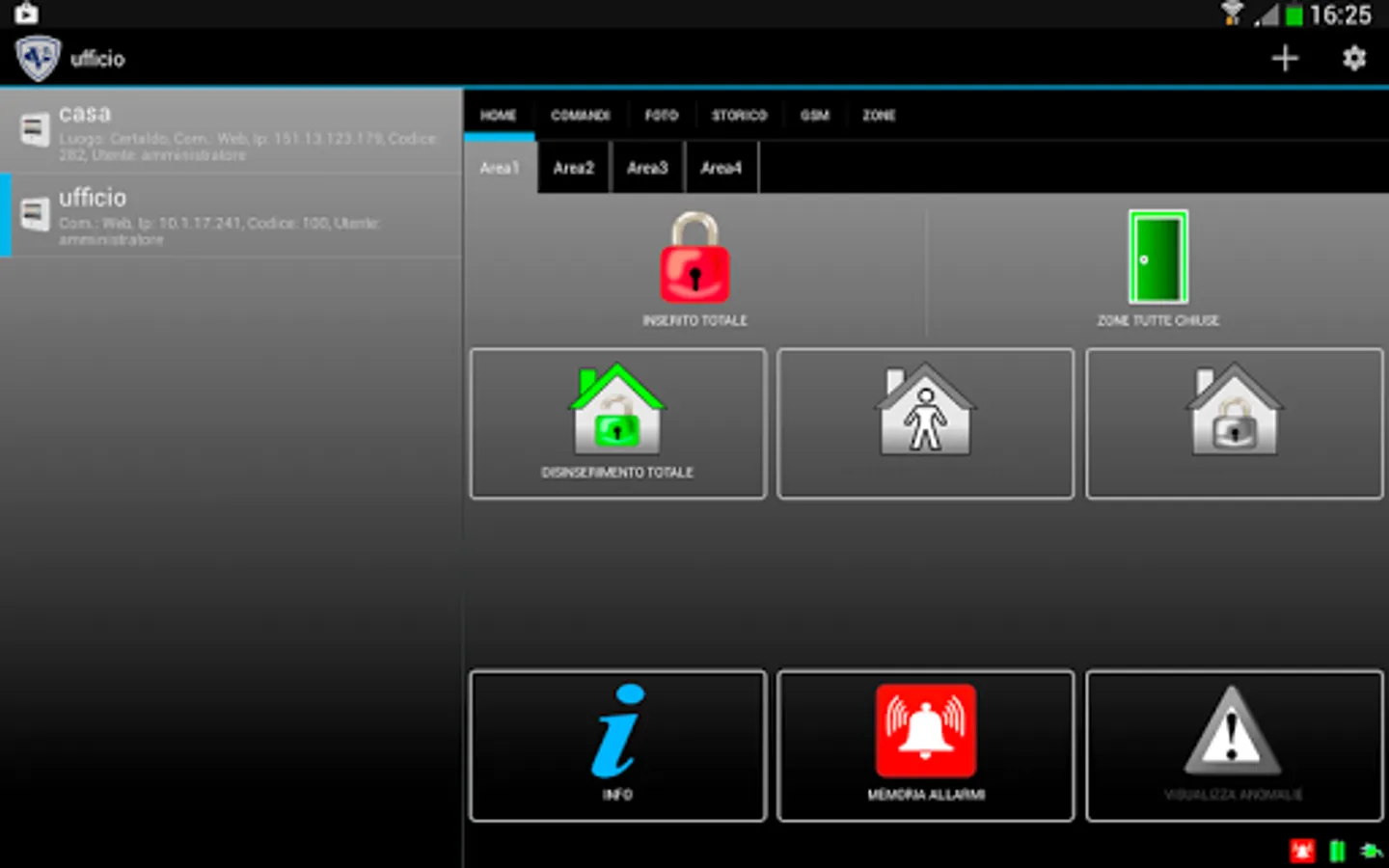 Through this application, the user can control various functions of the alarm system depending on the model of control unit installed. The Application provides for the control of up to 16 plants in Cloud, WEB, Tunnel or SMS mode.