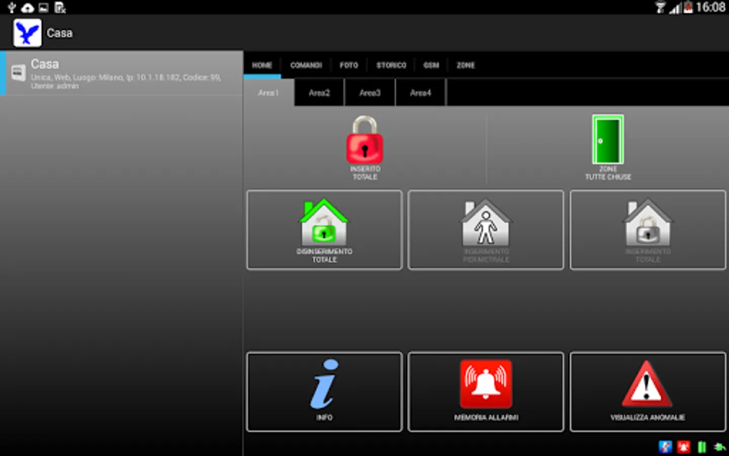 Through this application, the user can control various functions of the alarm system depending on the model of the installed unit. The application provides for the control of up to 4 systems in WEB, Tunnel or SMS mode.