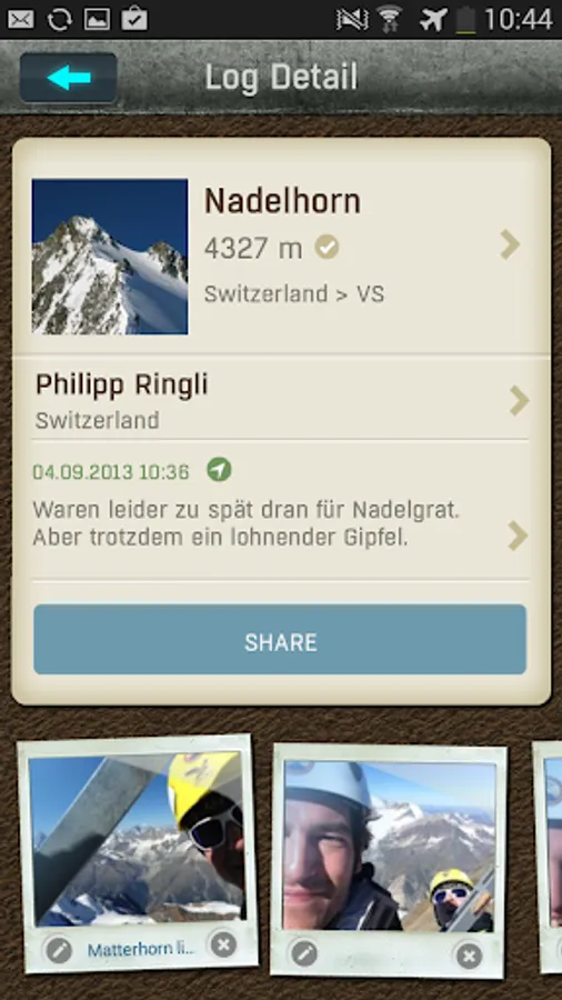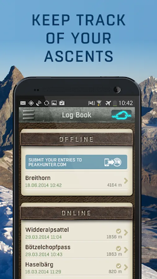 The Peakhunter App only lets you create an entry while standing on a peak. That proves that you have climbed it (GPS location, time stamp). Write about your experience and let other fellow hunters know about the conditions; take photos and share them with others on Facebook.