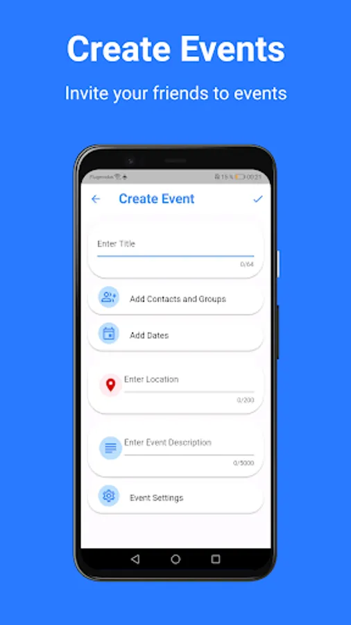 Sync your contacts in a privacy compliant way and invite them to your events directly in the app.