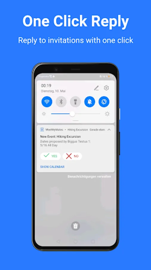 With our one click reply, all participants can reply to your event request directly in the push message. This makes replying easier than ever before.