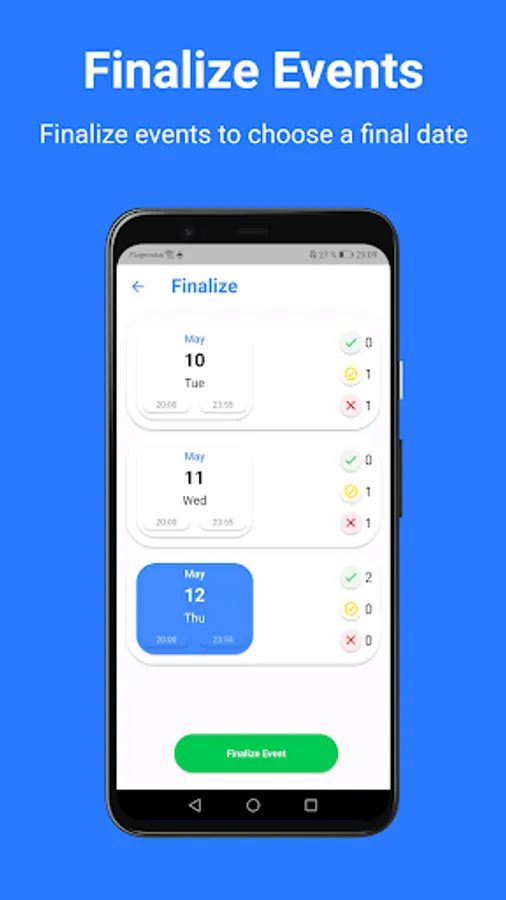 Once you have decided which date your event will take place, you can simply finalize your desired date and all participants will be notified which is the final date. In case of no meeting you can also cancel the event.