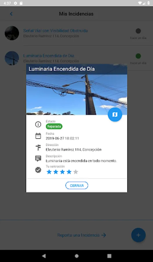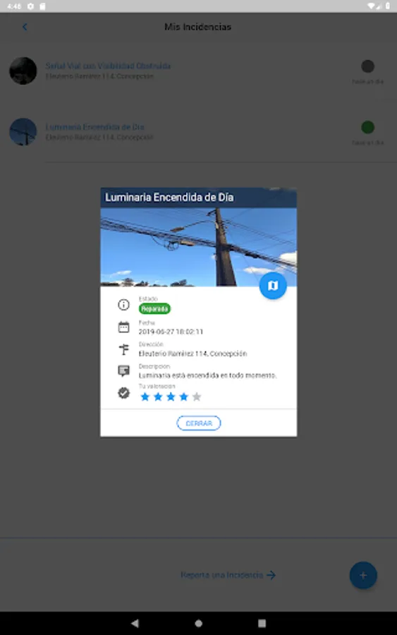 In the case of incidents, you can observe a record of the problems you have reported, review their status and evaluate the work done when you receive a notification informing you that the incident was repaired.