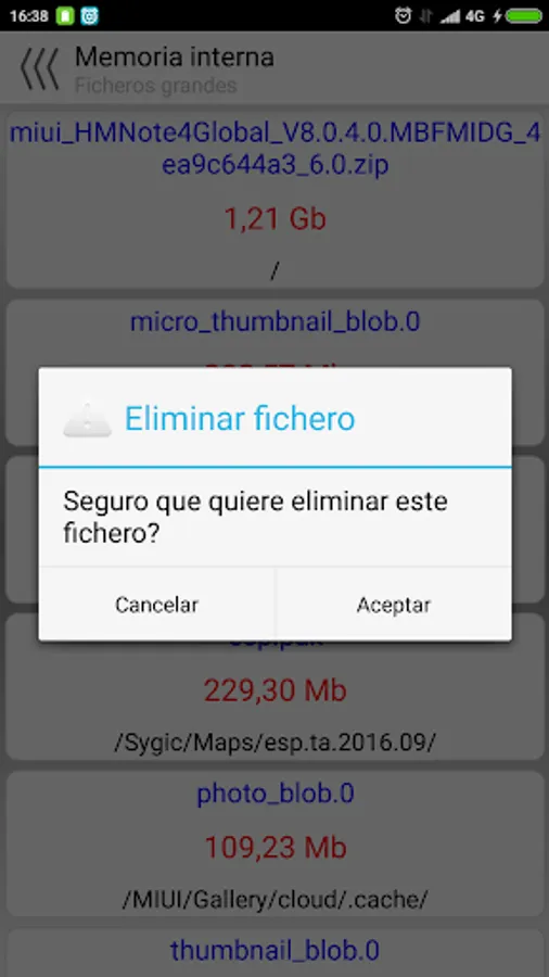 But the great functionality of this application is that you can set alerts for each type of memory so that when you have less than 10% free space alert you with a notification. In this way you can solve your space problems before it is too late.