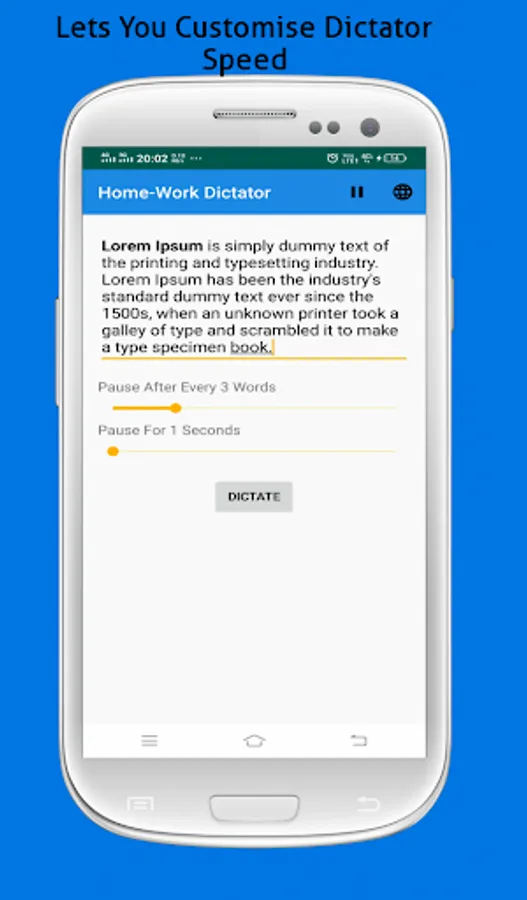 This app helps students to write their assignments on time. by dictating the long paragraphs and letting them customize the behaviour of the dictator.