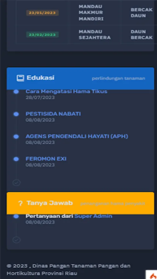 Information System for Control of Plant Pest Organisms, data on OPT attack reports, education, questions and answers, etc