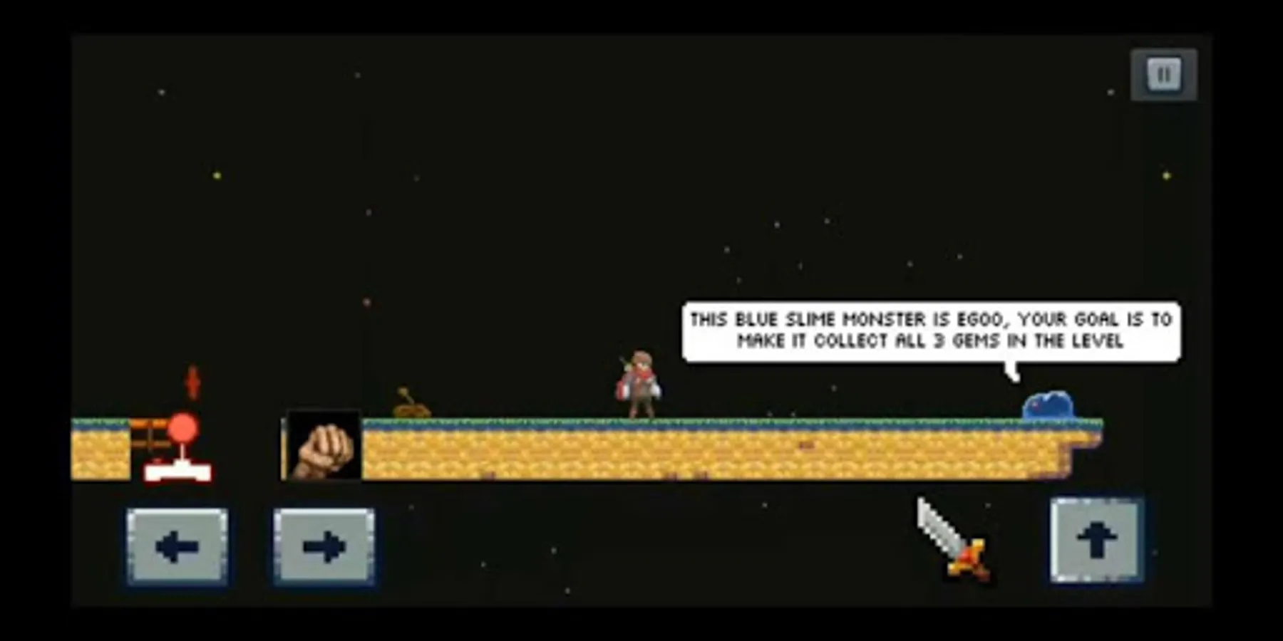 - Make 'Egoo' - the blue slime monster collect all 3 gems in the level