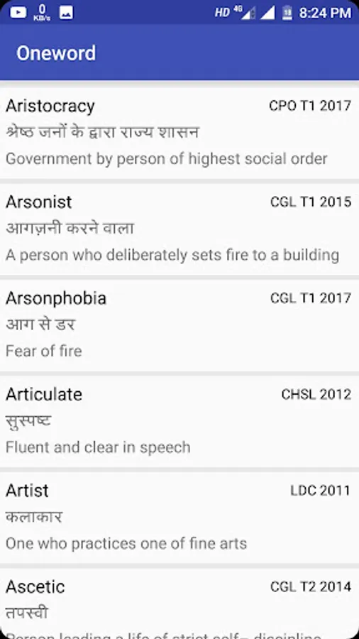 One Word Substitution SSC CGL app will help you learn all the words which were asked in SSC exams in previous years 1996-2019. It contains all the One Word Substitution questions asked in previous year exams.