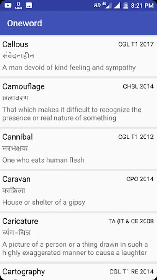 This App has all the important One Word Substitution with explanations. One Word Substitution SSC CGL App contains around 1200 one words.