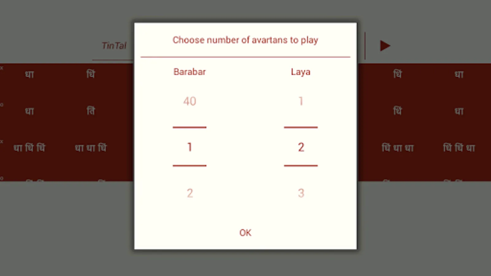 ★ Select number of avartan to play the teka in barabar and selected laya (Useful for kathak/dance practice)