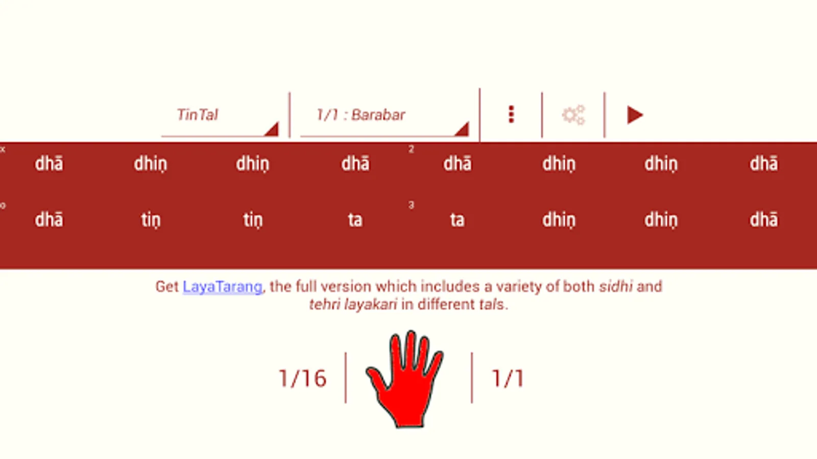 ★ Only Tintal is available (of the 15 basic tabla taal in the full version)