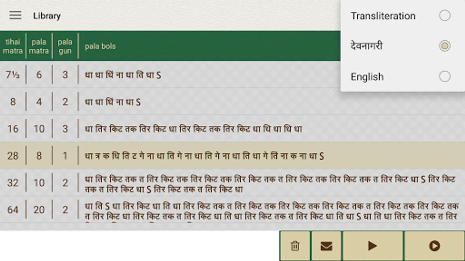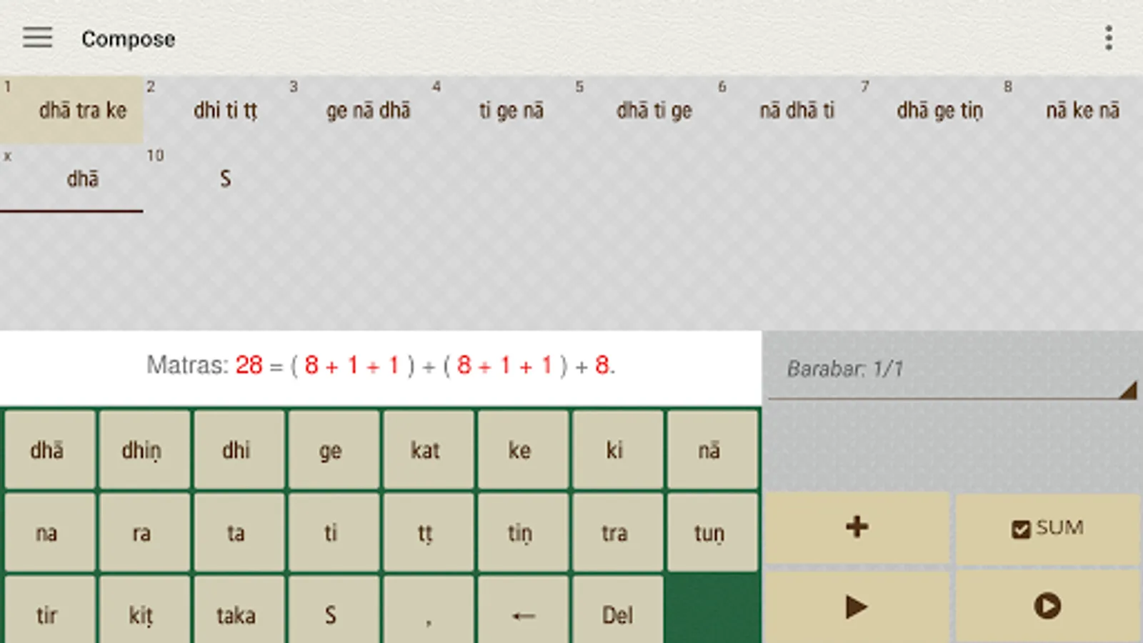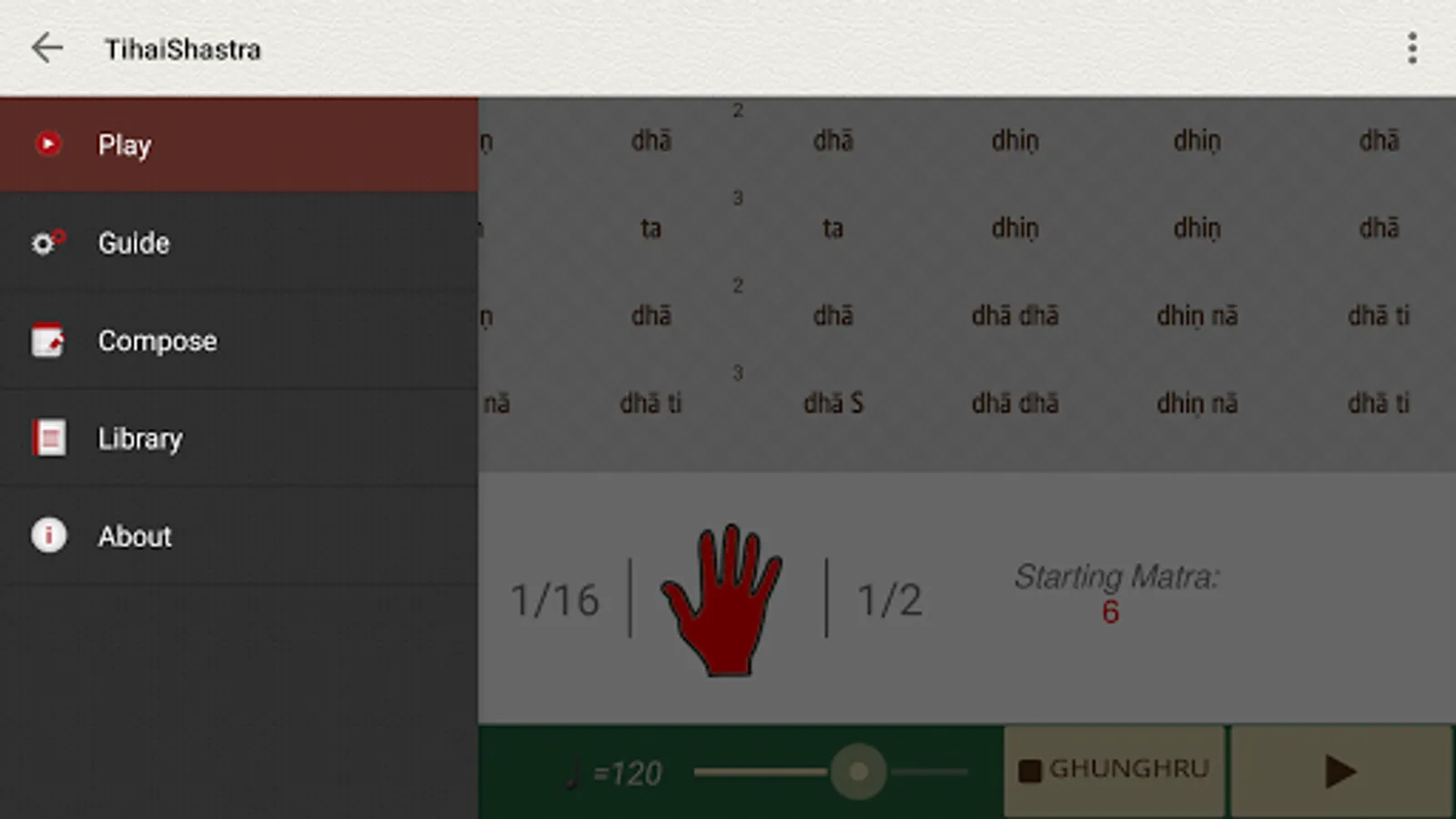 ★ Compose Mode - To compose tihai with pala lengths of upto 48 matra