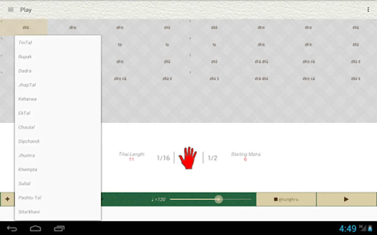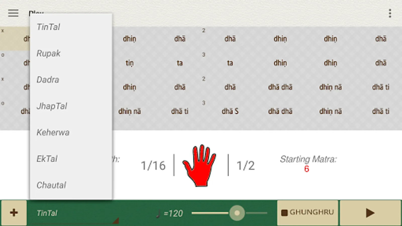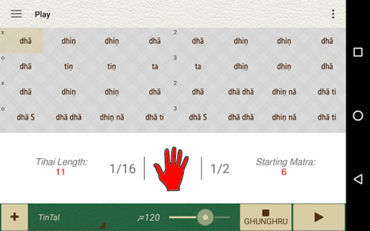 ★ Choose to play tihai in any of the 6 different gun (speeds) : Barabar to chegun