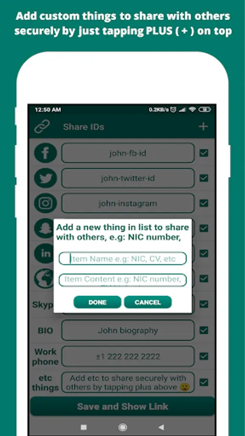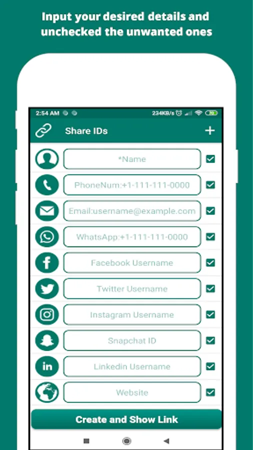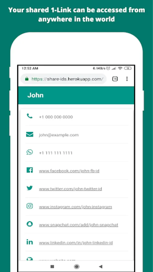 ✔️ Or any kind of your customized details you want to share with others at one place. For example, you put your custom details to have your virtual business cards.