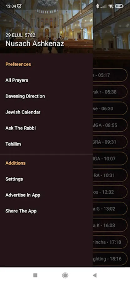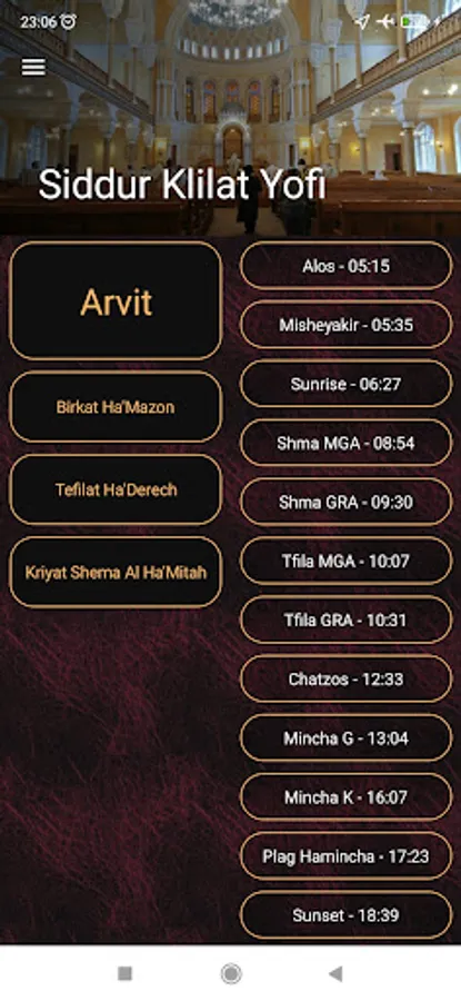 In addition - the app displays the prayers that are relevant to the time of the day on the main screen and matches them to the date, so that on the first of the month it will also presented Halel and Musaff, and will remind you to say Yale ve'Yavo, etc.