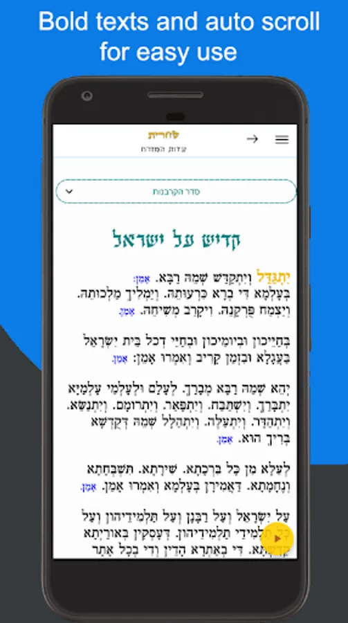 - Auto scroll - Auto scroll buttons allow you scroll the prayer automaticaly in few diffrent speeds.