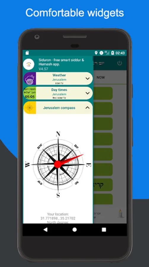 - Jerusalem compass - Compass that show the direction of the Tfila - Jerusalem's direction (require location access).
