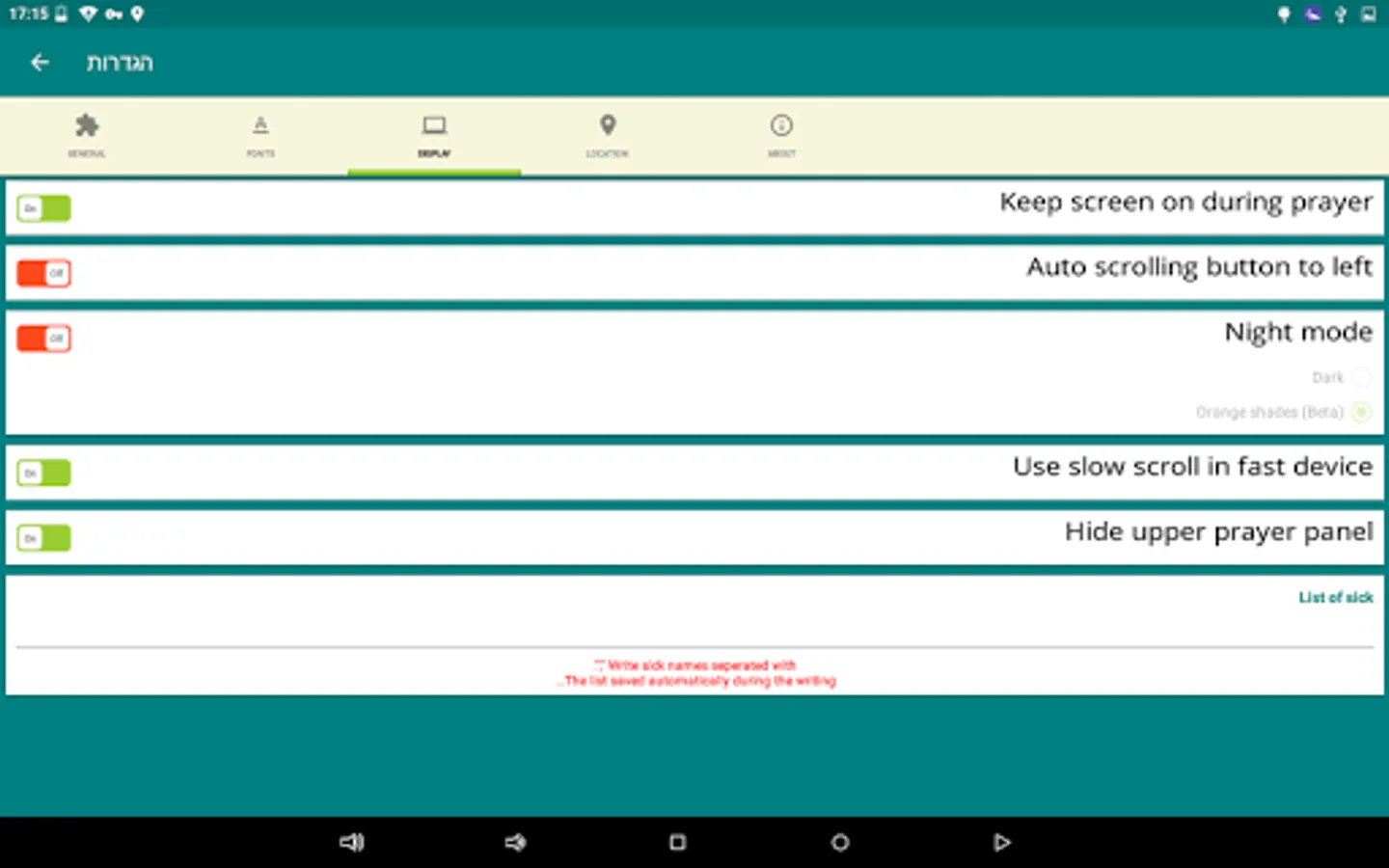 - Keep screen on - Including the option to keep the screen on during the prayers.